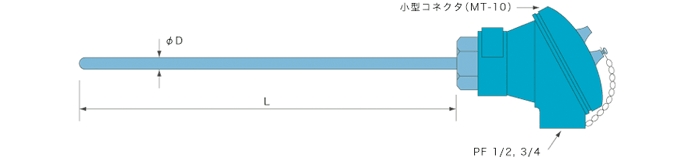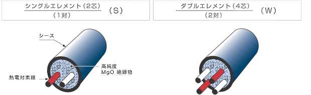 シースの先端に溶接された接地型。応答速度が速いのが特徴ですが、電気的誘導障害のあるところでの使用には適しません。