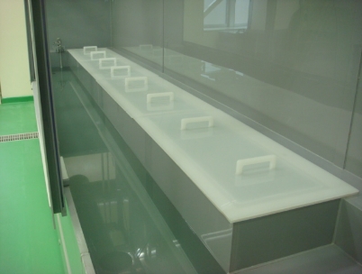 千歳工場の洗浄工程には保護管を丸ごと洗浄できる洗浄槽を保有しております。新品製品と修理品の洗浄槽を分け洗浄管理しております。