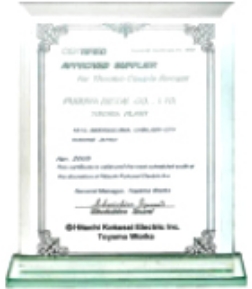 2005年、株式会社日立国際電気様より「CERTIFIED APPROVED SUPPLIER for Thermo-couple Recast」に認定されました。